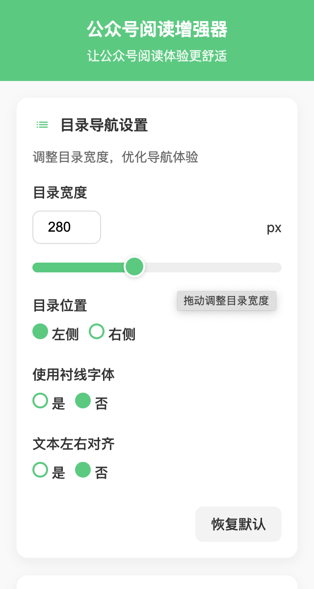 支持设置目录展示位置,目录在左时,文章二维码在右,目录在右时,相应调整
